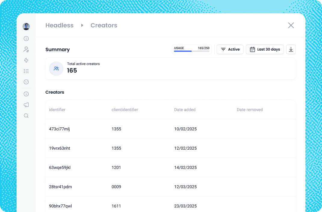 You can now access detailed reports showing your active creators, including when they were added or removed.